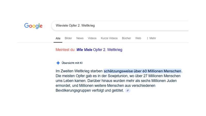 Wenn man die KI befragt, die künstliche Intelligenz, zu dem Thema "Opfer im 2. Weltkrieg", dann lautet die Antwort: